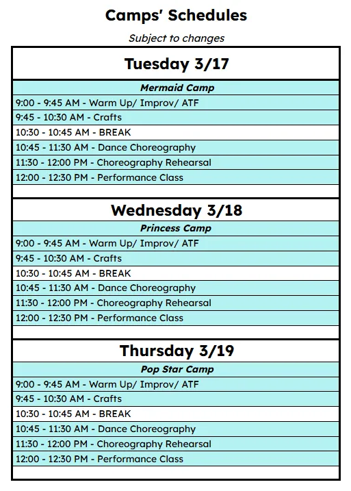 Our Spring Dance Camps are perfect for younger dancers who love to move, imagine, and perform! Each day features a new theme, fun choreography, and age-appropriate dance training in a supportive environment.